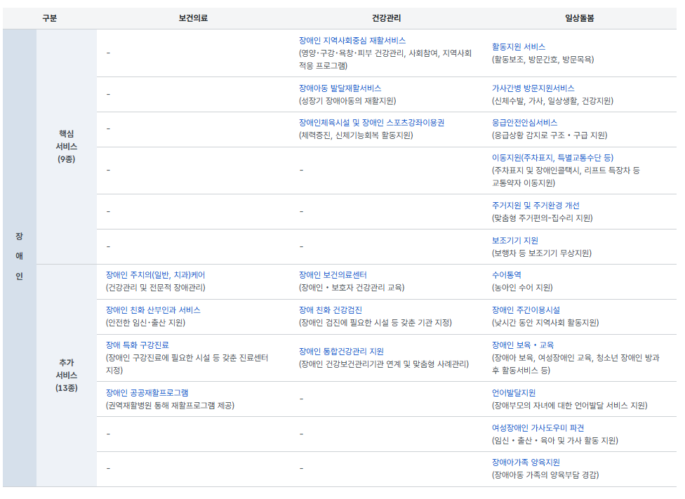 장애인 통합돌봄 주요서비스 목록